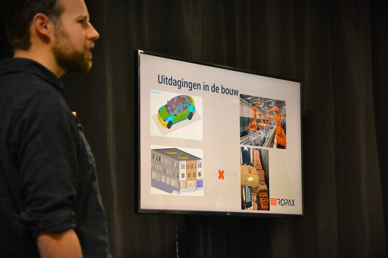 Als voorlaatste spreker deelde Jelle Overtoom van Ropax zijn ervaringen met het ontwikkelen en eerste toepassingen van een metselrobot. Daarbij werd duidelijk dat een bouwplaats tot de meest uitdagende omgevingen voor automatisering behoort. Het terrein varieert elke keer, tekeningen wijken af van de werkelijkheid en er zijn veel logistieke afhankelijkheden. Dat vraagt niet alleen om technische oplossingen, maar om bouwteams die bereid zijn anders te plannen en te werken.